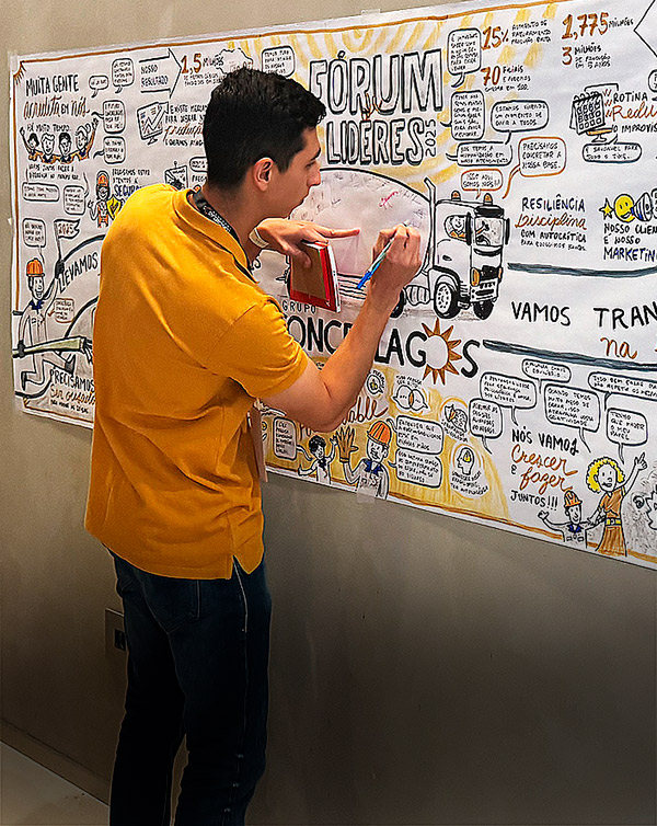 Ajudamos a simplificar a comunicação interna com o visual thinking para as reuniões de líderes, eventos corporativos e encontros de estratégia.